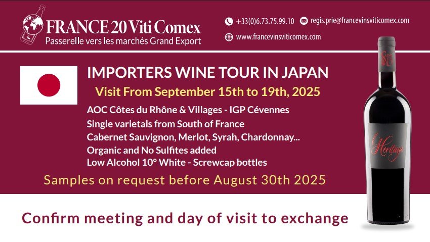 FRANCE 20 Viti Comex accompagne ses vignerons dans les axes de développement stratégique, commercial et opérationnel sur 4 zones export, 2 situées en Amérique du Nord, 2 en Asie. Forme d'externalisation fortement intégrée avec les propriétaires et les directeurs, nous nous déplaçons 2 fois par an, à raison de 15 jours par tournée et par zone. Missions acheteurs, visites prospects, clients, magasins, relevés de concurrence, participations à des salons prioritaires... Toute une expertise à votre disposition, à des fins de référencer vos vins avec les bons partenaires.